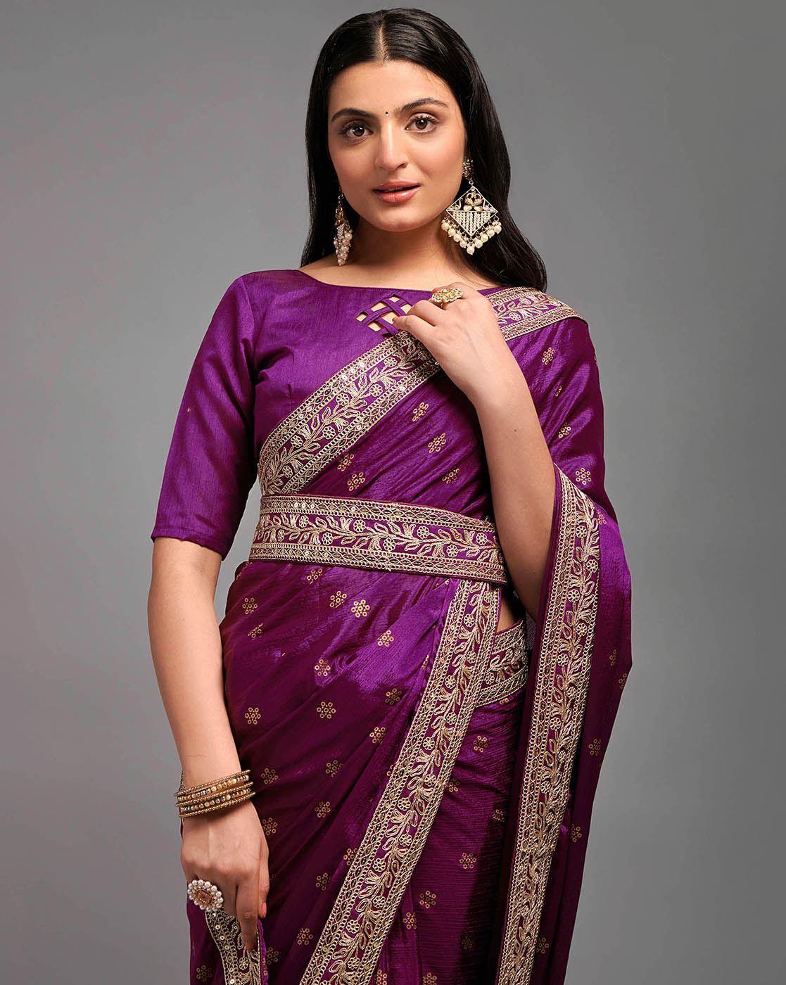 • The last image gives a detailed look of the blouse piece that comes with this saree (The model is wearing a blouse from our in-house wardrobe)
