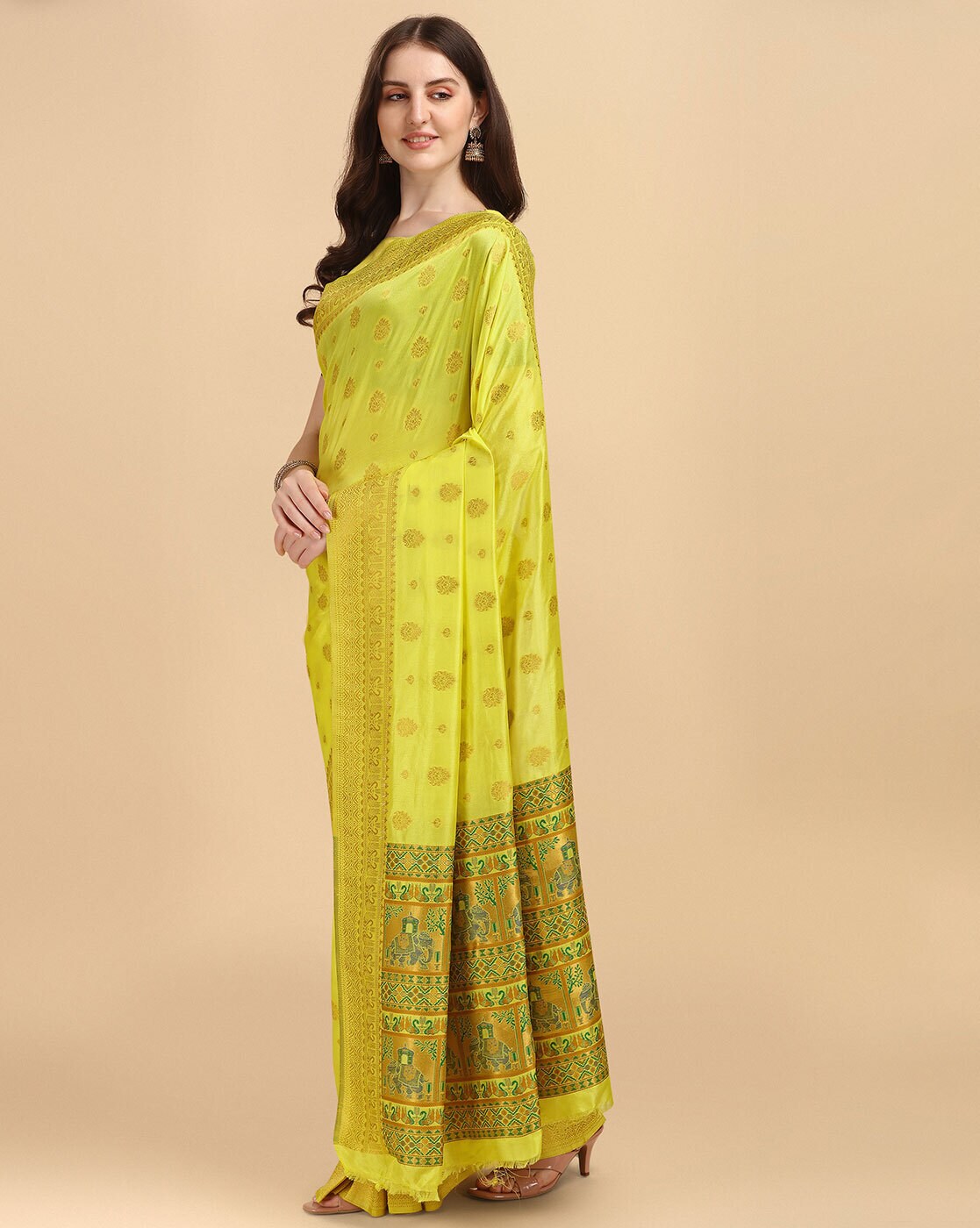 - The last image gives a detailed look of the blouse piece that comes with this saree (The model is wearing a blouse from our in-house wardrobe)