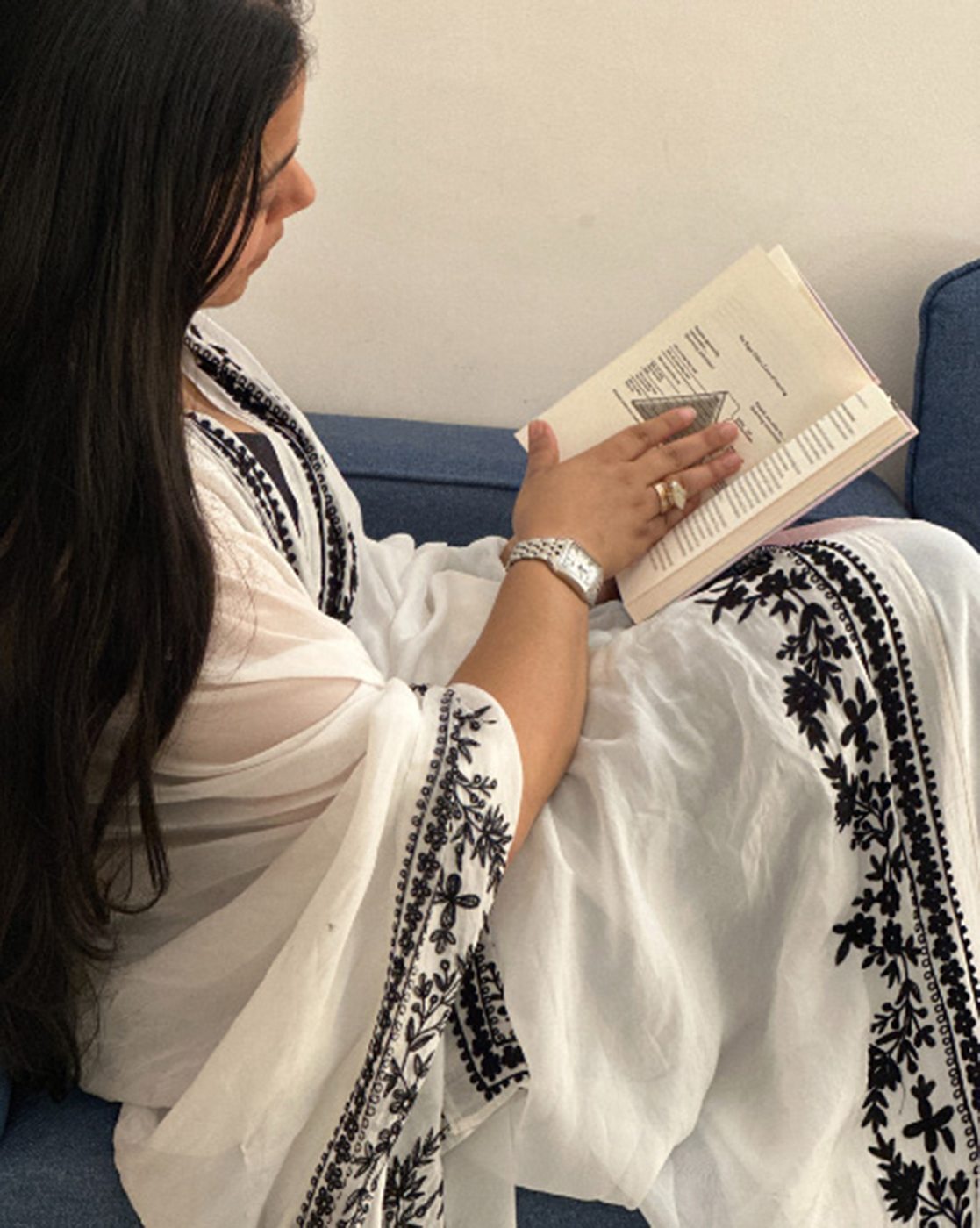 • The last image gives a detailed look of the blouse piece that comes with this saree (The model is wearing a blouse from our in-house wardrobe)