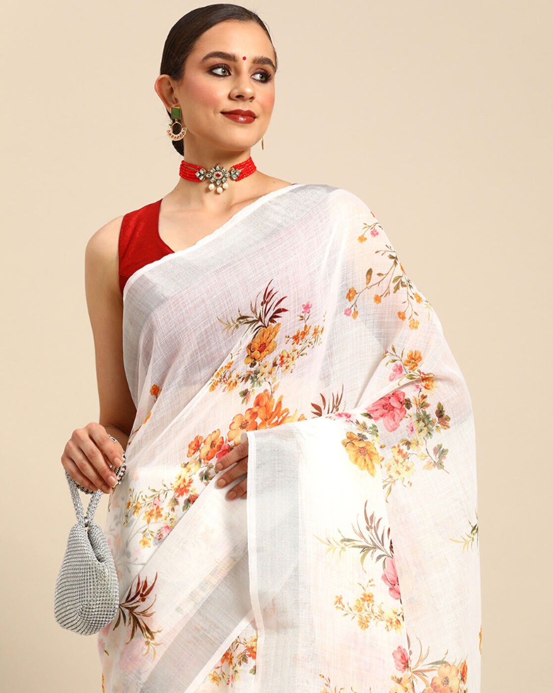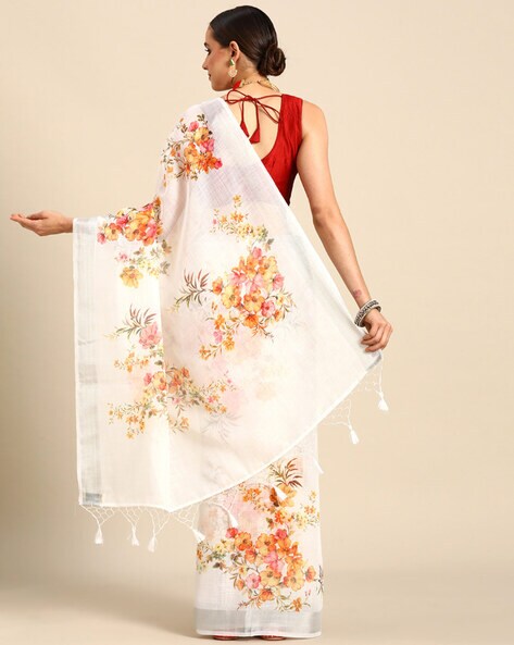 • The last image gives a detailed look of the blouse piece that comes with this saree (The model is wearing a blouse from our in-house wardrobe)
