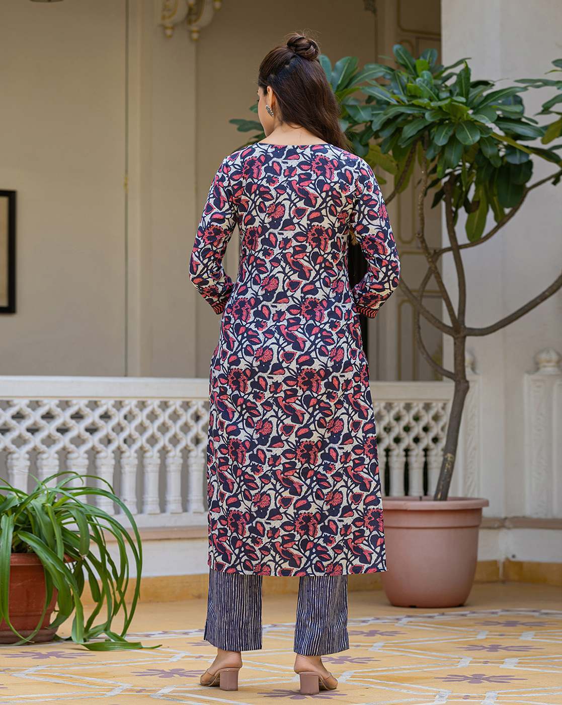 Women Floral Print Straight Kurta with Pants & Dupatta