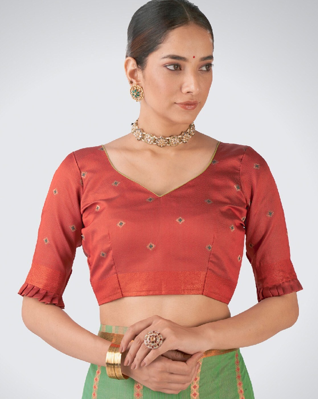 • The last image gives a detailed look of the blouse piece that comes with this saree (The blouse in the images is only for styling purpose)