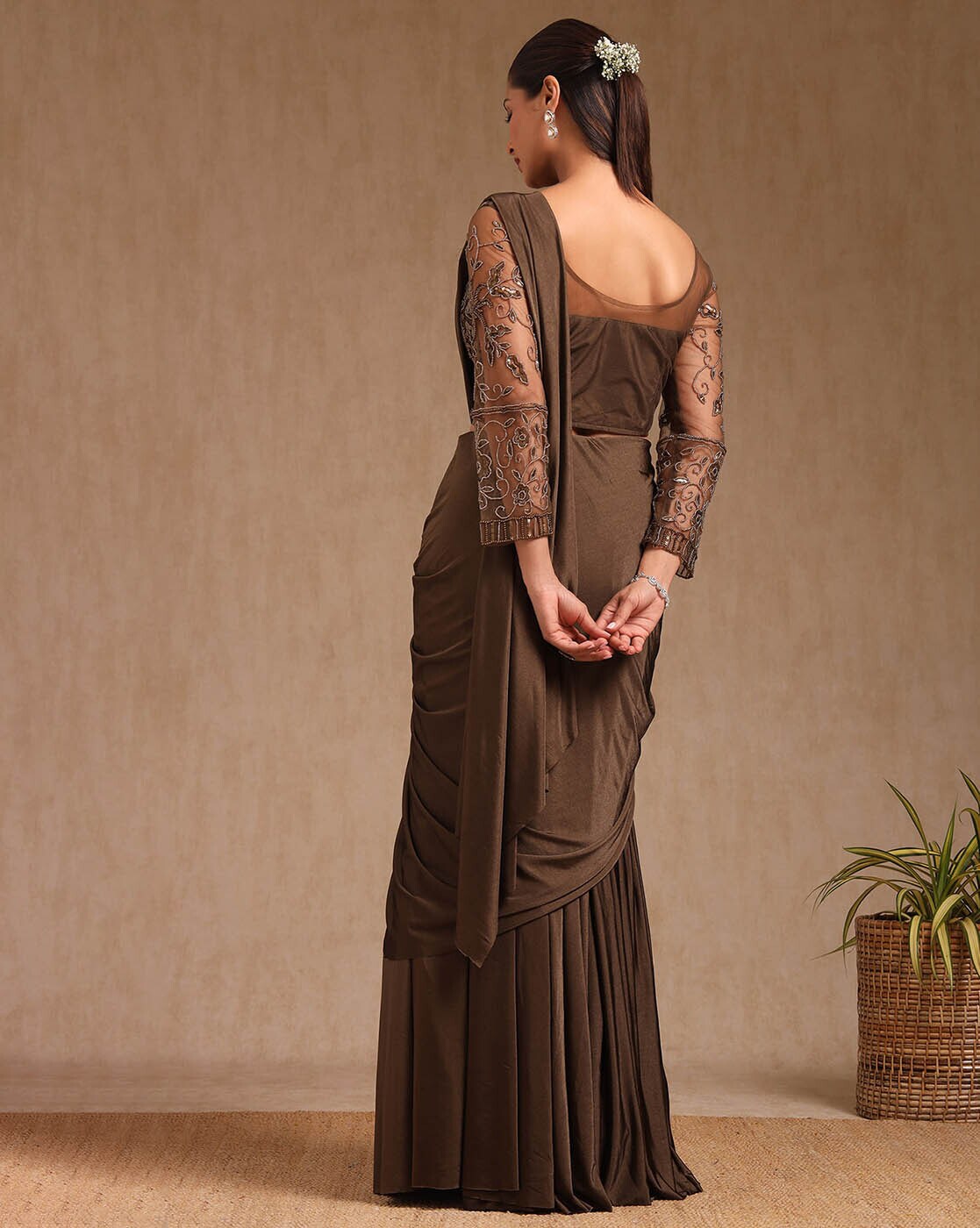- The last image gives a detailed look of the blouse piece that comes with this saree (The model is wearing a blouse from our in-house wardrobe)