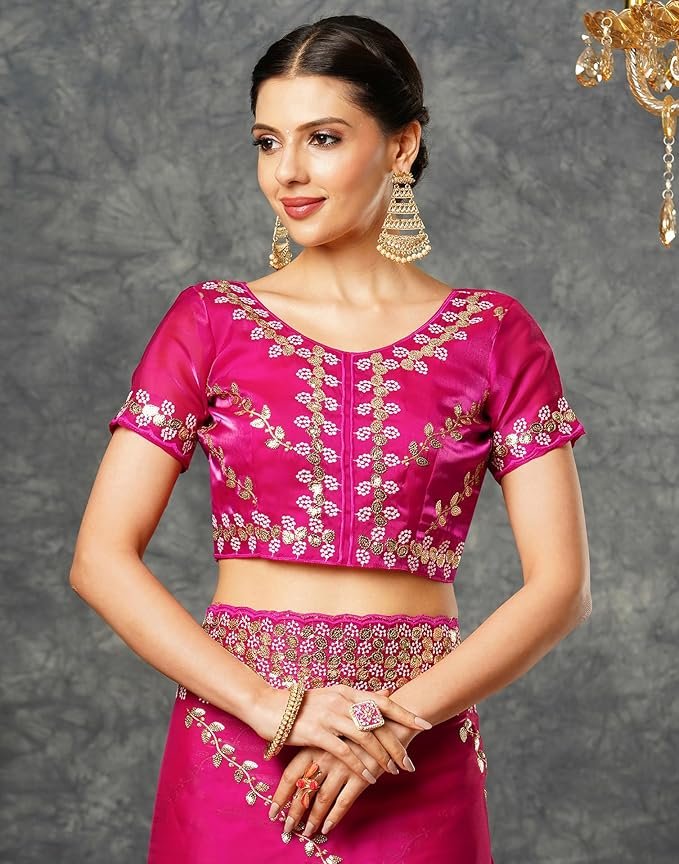 Women’s Tissue Silk Sequence Embroidery Scalloped Border Saree With Unstitched Blouse Piece